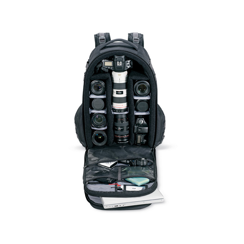 Код:26941020004- Компактна раница за 1 SLR с прикачен 80–200мм f/2.8, 2-3 допълнителени обектива,светкавица и аксесоари