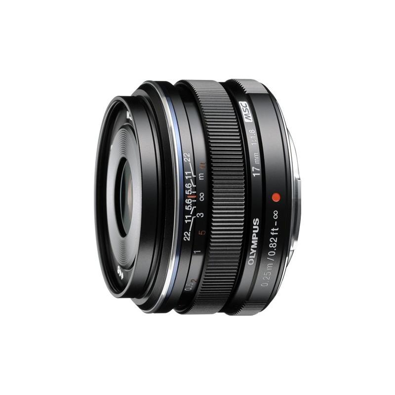 Olympus M.ZUIKO DIGITAL 17mm f/1.8 MSC е обектив с 34мм еквивалентно фокусно разстояние за m4/3 безогледални камери. Широкият зрителен ъгъл и светлосилната бленда от f/1.8 помогат при работа в трудни светлинни условия и предлагат повече контрол над дълбочината на фокус. Оптичният дизайн с асферичен елемент и елемент с високо отражение помагат за контрол на сферичните аберации и изкривяването в целия диапазон на обектива за постигане на по-резки и ясни снимки. В допълнение MSC моторът, който е подходящ за снимки и видео, осигурява бързо и тихо фокусиране, а гривната за ръчен фокус може да бъде използва за по-лесни настройки и контрол на фокуса.