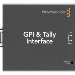 Код:104040051- Blackmagic Design GPI & Tally Interface е устройство за разпространение на сигнал, с който се индикира коя от камерите в момента е в ефир. Свържете GPI & Tally Interface постедством 10/100 BaseT RJ45 конектора към ATEM switcher и ще получите 8 изхода. При необходимост да се индикират повече устроиства се включва второ GPI & Tally Interfacе устройство през 10/100 BaseT RJ45 loop конектора на първото и с помоща на ATEM Setup Utility се настройва едното да идикира изходи от 1 до 8, а второто от 9 до 16