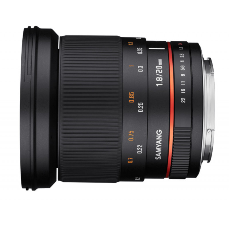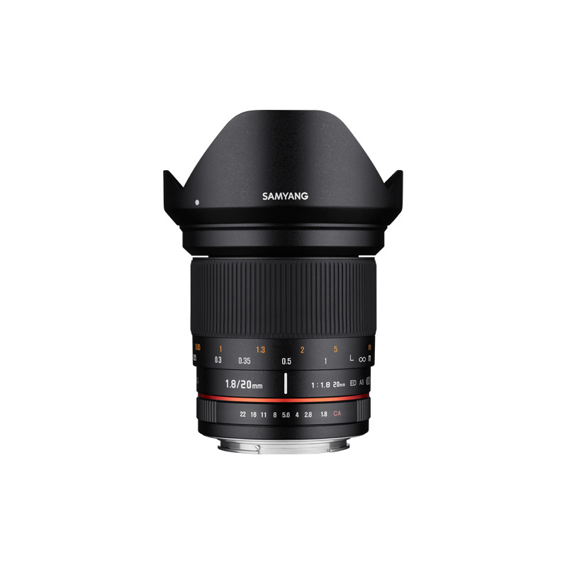 Samyang 20mm f/1.8 ED AS UMC е широкоъгълен ръчнофокусен обектив с относително широк максимален диафрагмен отвор, което го прави подходящ за работа в условията на слаба осветеност и в затворени пространства.