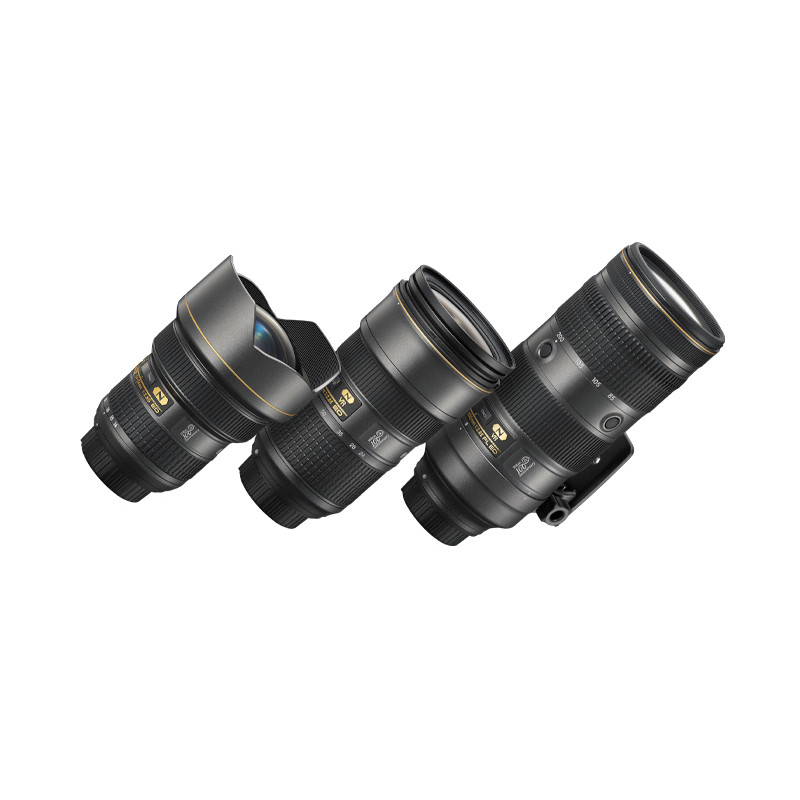 Код:101020593- Комплектът от три обектива Nikon с формат FX се състои от AF-S NIKKOR 14-24mm f/2.8G ED, AF-S NIKKOR 24-70mm f/2.8E ED VR и AF-S NIKKOR 70-200mm f/2.8E FL ED VR.