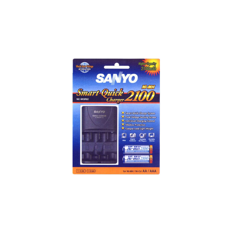зарядно устройство Sanyo NC-MQR02 + 2 x AA 2100 mAh акумулаторни батерии + зарядно у-во