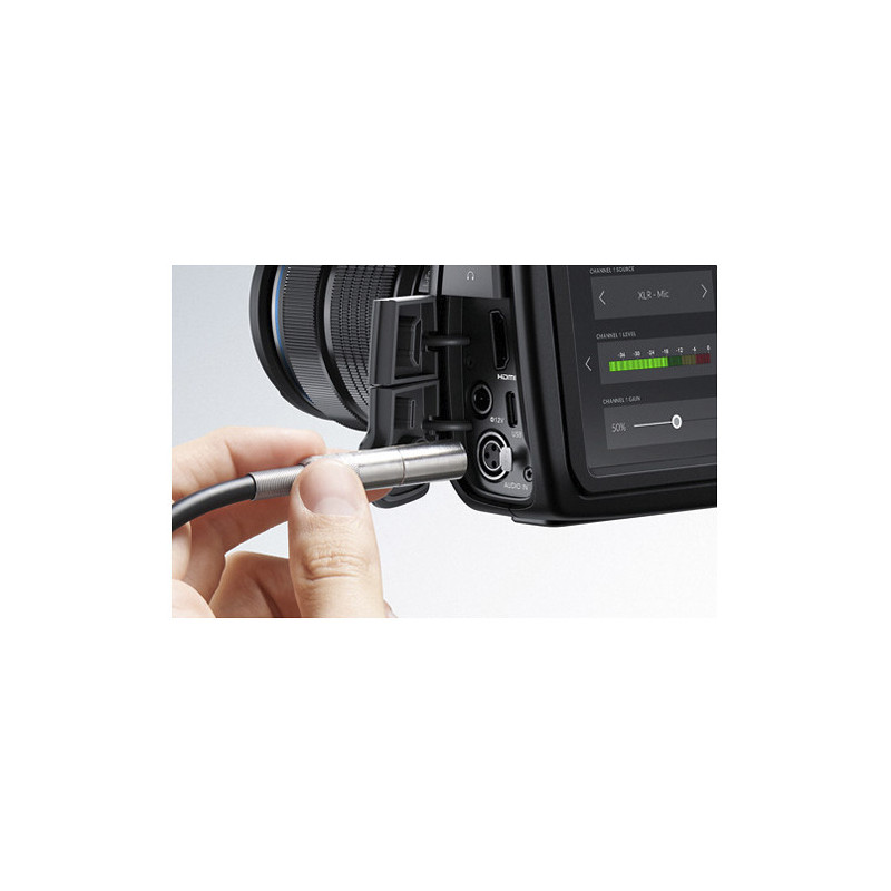 Aудио характеристиките на Pocket Cinema Camera 4K включват мини-XLR вход с фантомна мощност за професионални микрофони, 3.5 мм жак и вътрешен стерео микрофон. Допълнителните функции включват Blackmagic OS и Bluetooth дистанционно управление. DaVinci Resolve Studio код за активиране включен в комплекта ви дава възможност за универсален контрол при постпродукция.