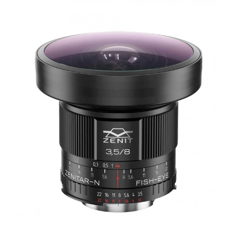 Ултраширокоъгълен твърд обектив тип "рибешко око" с кръгово изображение. Zenitar 3,5/8 е разработен за огледално-рефлексни фотоапарати с пълноформатен сензор.