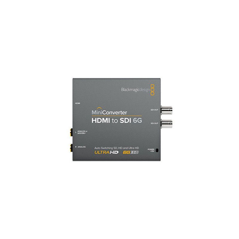 Blackmagic HDMI към SDI 6G Mini Converter конвертира HDMI към SD, HD, 3G, or 6G-SD с разделителна способност до DCI 4K (4096 x 2160) 24p и UHD 4K (3840 x 2160) 30p към HDMI.