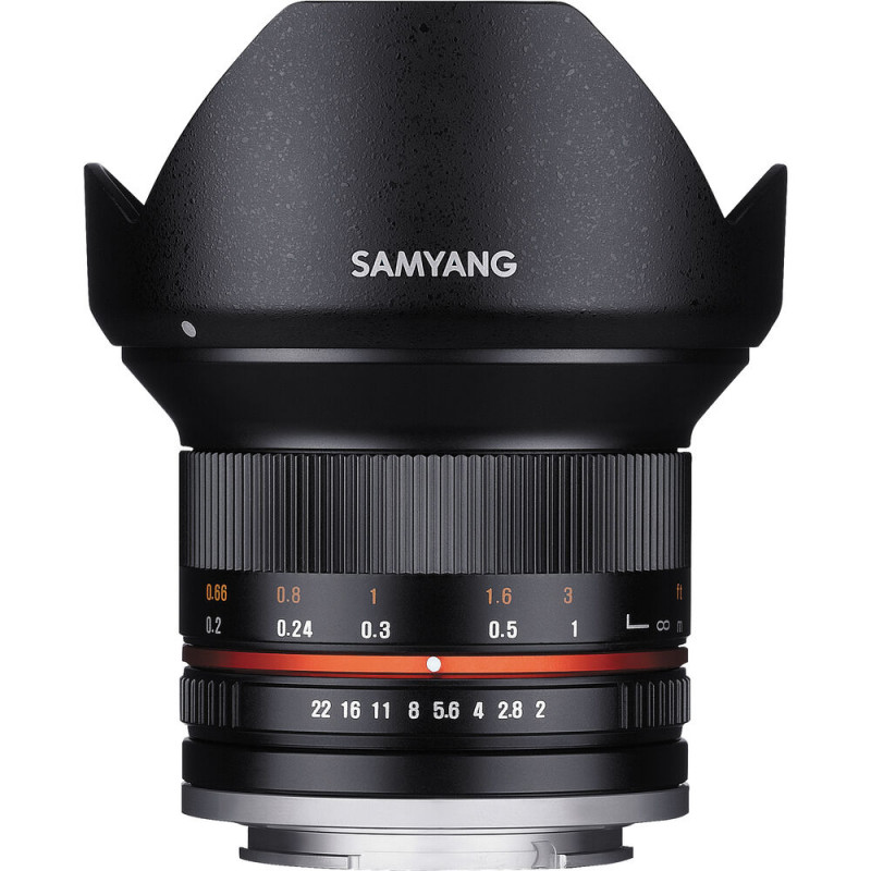Samyang 12mm f/2.0 NCS CS е широкоъгълен ръчнофокусен обектив с фиксирано фокусно разстояние за фотоапарати с APS-C и по-малки сензори.