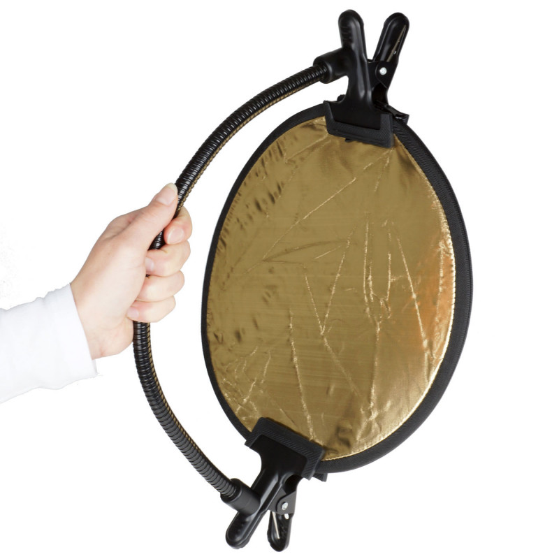 • Позволява да позиционирате лесно рефлектор, сива карта и други аксесоари