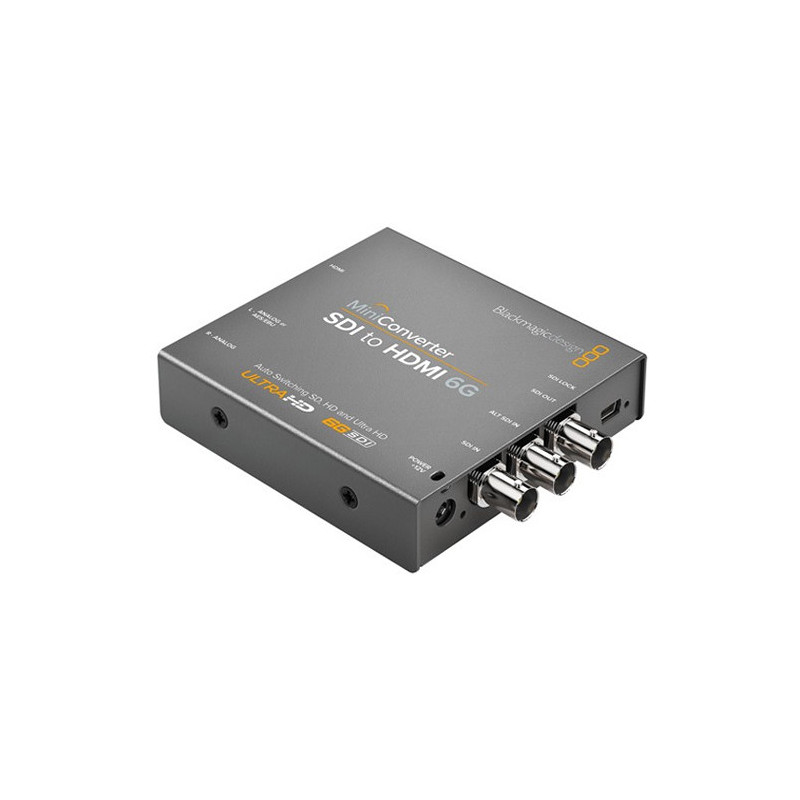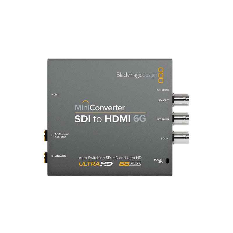 Blackmagic SDI към HDMI 6G Mini Converter конвертира SDI с разделителна способност до DCI 4K (4096 x 2160) 24p и UHD 4K (3840 x 2160) 60p към HDMI.