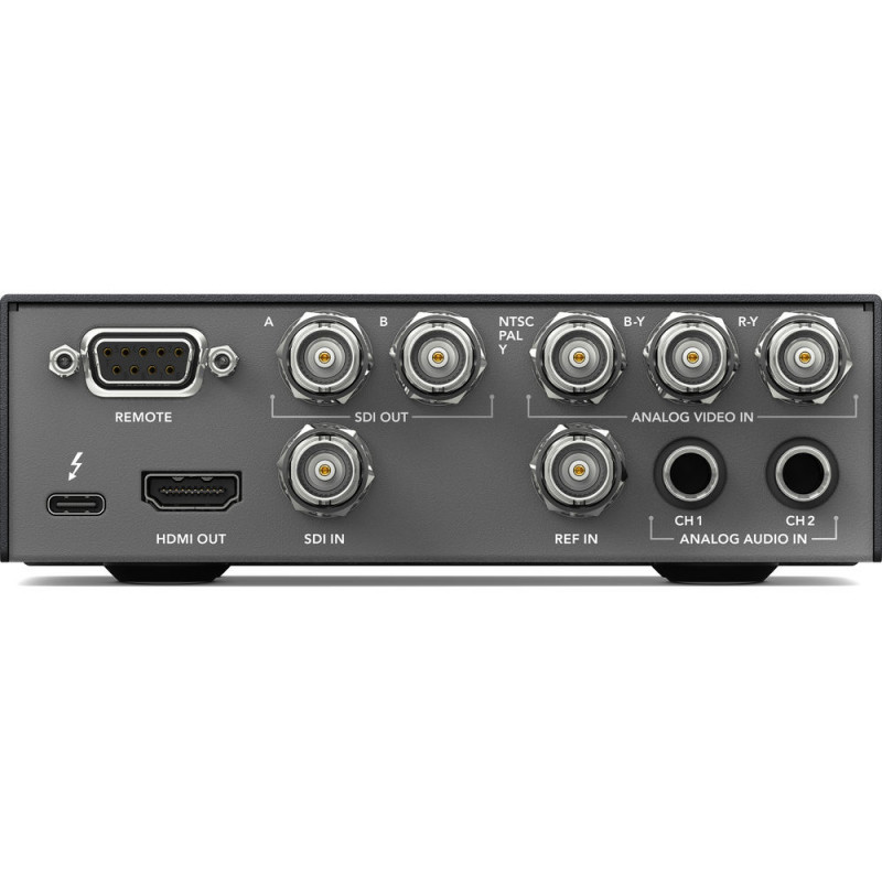 Blackmagic UltraStudio Mini разполага с SDI и аналогов видео вход, SDI изход за fill и key, HDMI изход за за връзка с монитори и RS-422 връзка за професионални видео пултове.