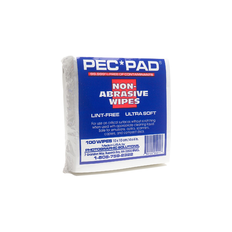 Почистващите кърпички PEC*PAD са изключително здрави и са толкова чисти (99.999%) и меки че е невъзможно да надраскате дори емулсия на филм. Могат да се използват за почистване и на скенери, огледала, обективи, телескопи и др.
