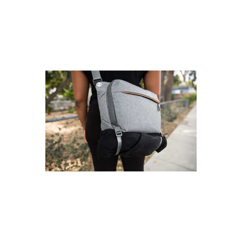 Peak Design Everyday Sling 6L е компактна универсална чанта, която може да се носи както през рамо, така и на кръста. Когато се носи през рамо, подплатения ремък на чантата може да се настрои за дясно или ляво рамо.