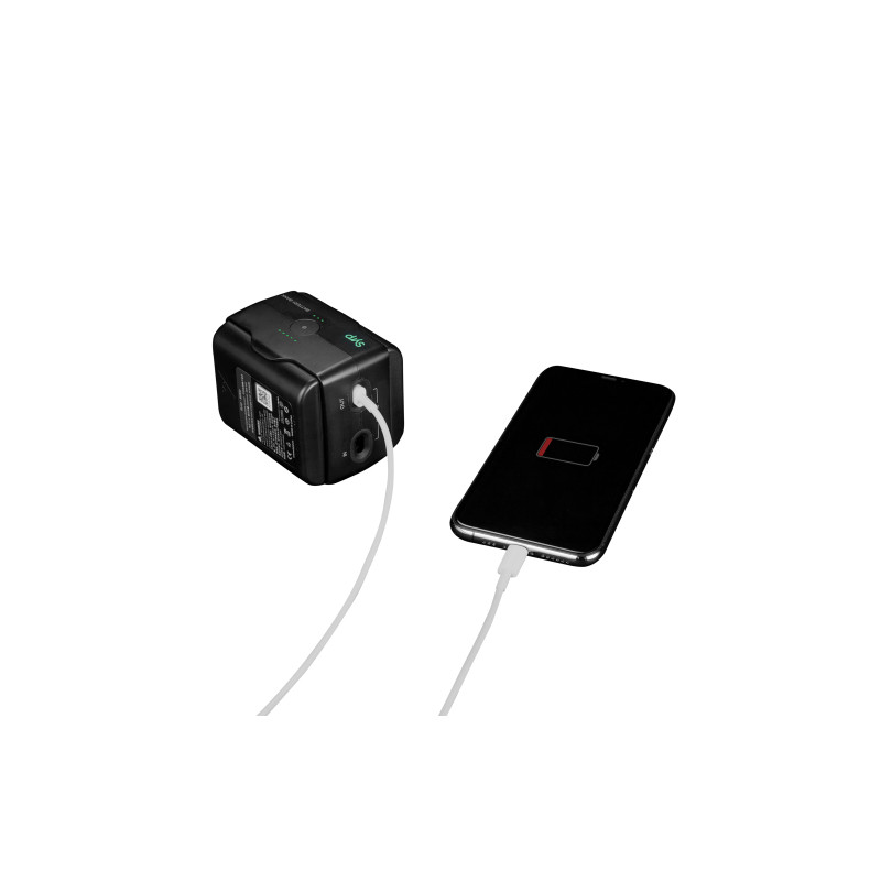 Рower Bank може да зарежда различни устройства или батерии, а отворът с резба 1/4"-20 позволява да бъде монтиран на статив, рамо за аксесоари или включената приставка за закачане към статив.