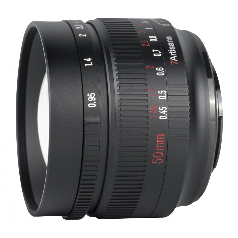 Обективът 7Artisans 50mm f/0.95 е стандартен твърд светлосилен модел за безогледални фотоапарати с кроп сензор.