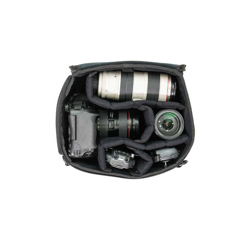 Включеният в комлекта WANDRD Camera Cube Essential Deep е подвижно защитно отделение, което може да се носи като самостоятелна чанта и разполага с пет разделителя и три ремъка за осигуряване на техниката. Camera Cube Essential Deep побира фотоапарат + 2-4 обектива.
