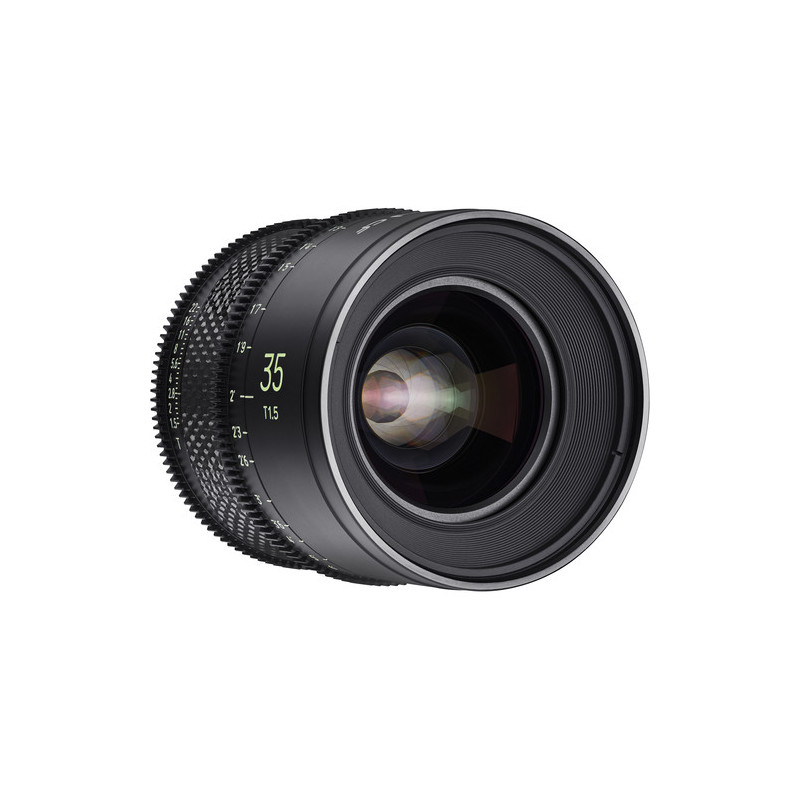 Samyang XEEN CF 35mm T1.5 е обектив за Canon EF байонет, който е изграден от лека карбонова конструкция и компактен дизайн, който покрива пълноформатен сензор и подсигурява работа с големи камери. Обективът поддържа 8K резолюция, което му помога за влагане в компактни системи, върху стабилизатори, както и работа в студио или продукция на терен. Обективите от XEEN CF серията разполагат с X-Coating технология, която им придава отличителен белег. Всички обективи от XEEN са цветово коригирани, за да няма разлика при смяната им и разполагат с 11 ламелна бленда за натурално изглеждащо боке.