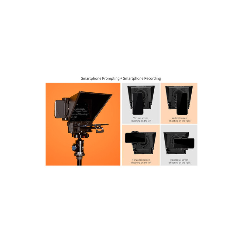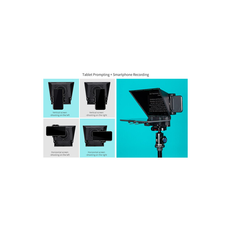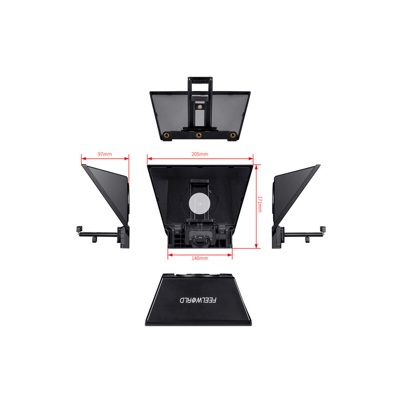 Feelworld TP2А Portable Teleprompter 8" е компактно телепромптер устройство (аутокю) за създаване на видео съдържание с DSLR/безогледален фотоапарат или смартфон.