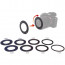 В комплекта са включени осем адаптера за обектив с най-популярните размери на резбите за аксесоари - 49/52/55/58/62/67/72/77 mm. При използване на смартфон минималното фокусно разстояние е необходимо да бъде 28mm, при таблет - 35mm, а при вертикално снимане - съответно 40 и 50mm.