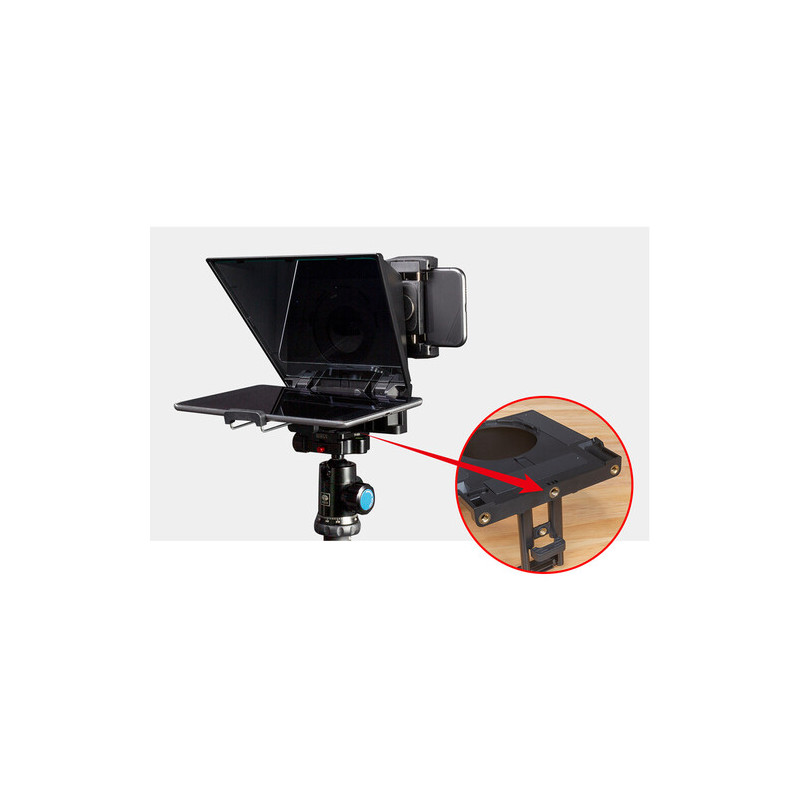 Основата на телепромптера е оборудвана със стандартни резби 1/4"-20 за монтаж към статив или други аксесоари.