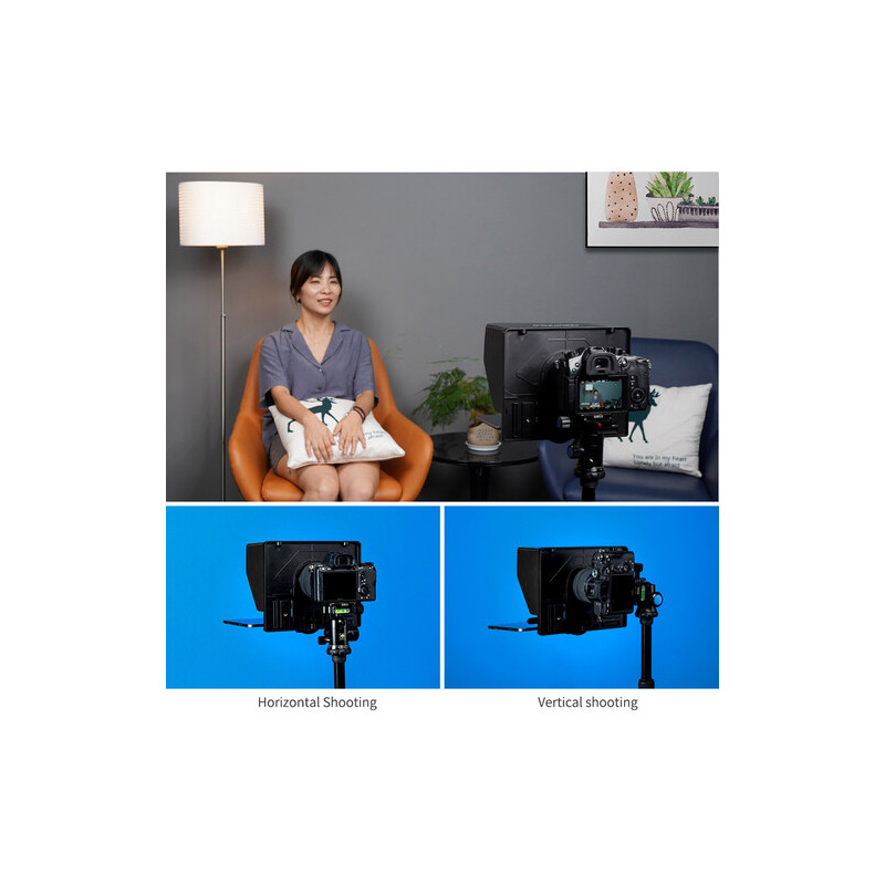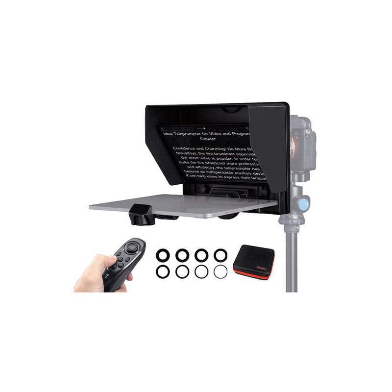 Feelworld TP10 Portable Teleprompter 10" е сгъваем преносим телепромптер устройство (аутокю) за създаване на видео съдържание с DSLR/безогледален фотоапарат или смартфон.