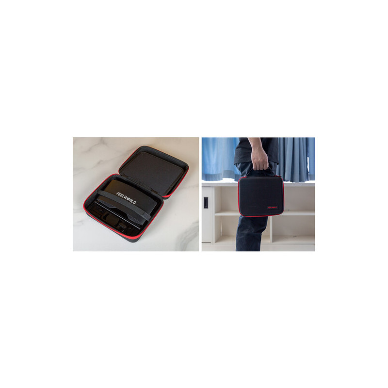 Feelworld TP10 е съвместим с широкоъгълни обективи. Поставката за смарт устройство поддържа устройства с размери до 11 инча и се поставя и премахва лесно, но с надеждно фиксиране.