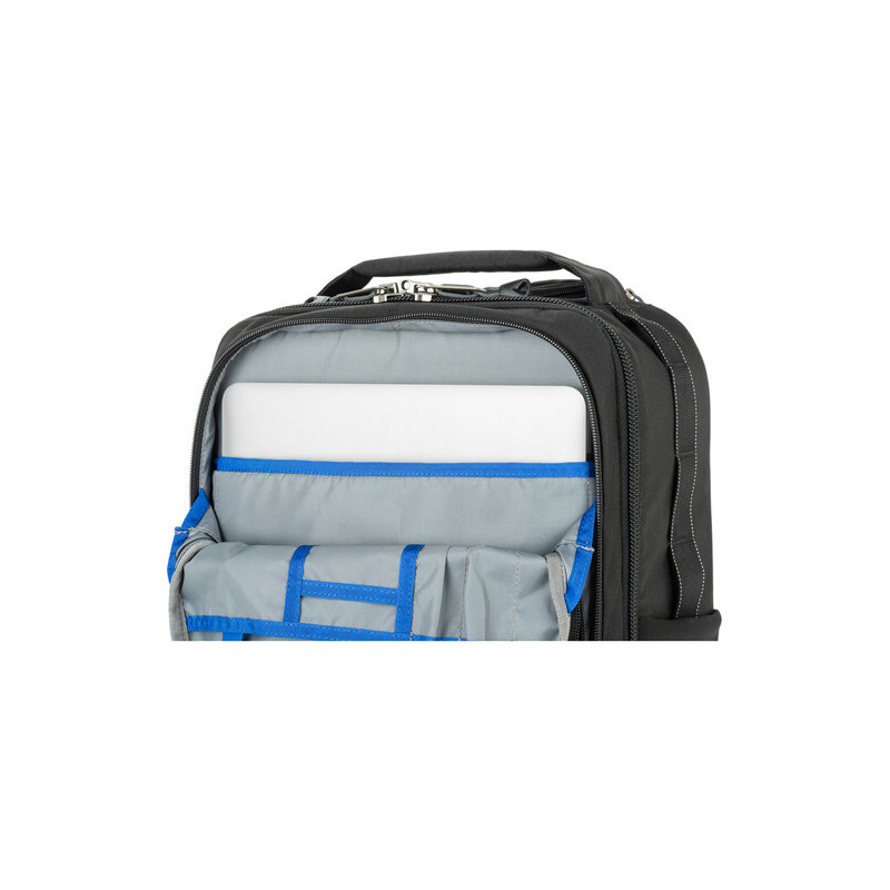 Think Tank Essentials Convertible Rolling Backpack има дръжки от трите страни за лесно хващане.