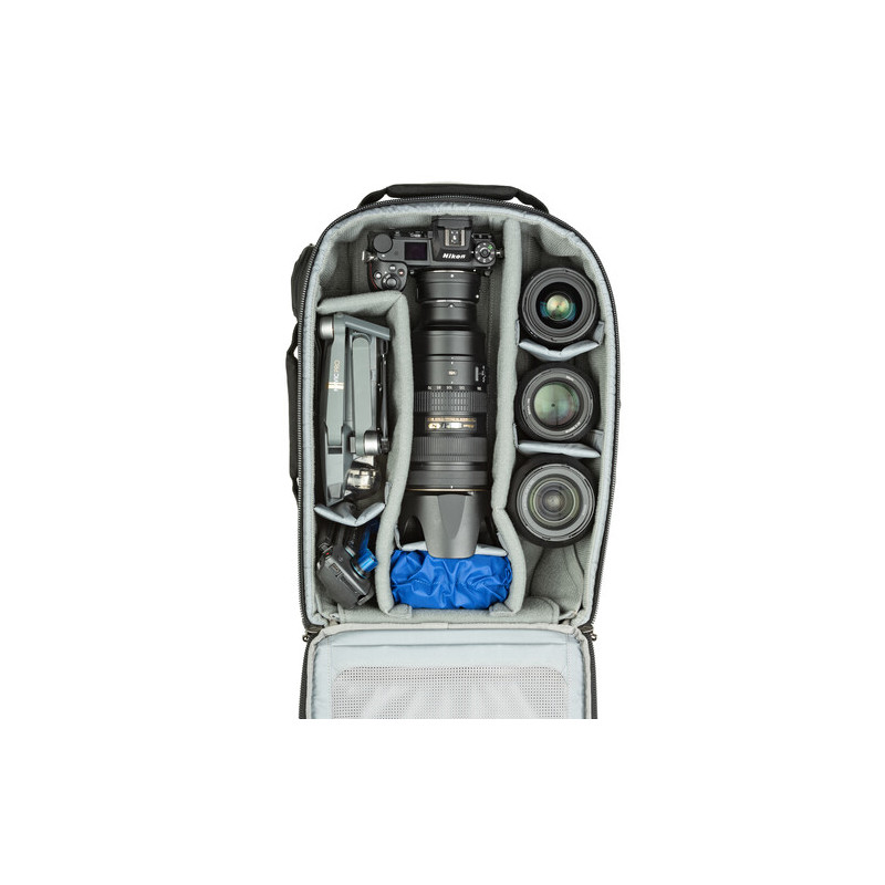 В нея може да поберете два DSLR или безогледална камера, прикачен 70–200mm f/2.8 обектив, множество допълнителни обективи и 16-инчов лаптоп.