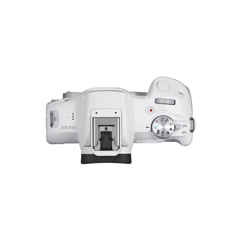 фотоапарат Canon EOS R50 (бял) + обектив Canon RF-S 18-45mm