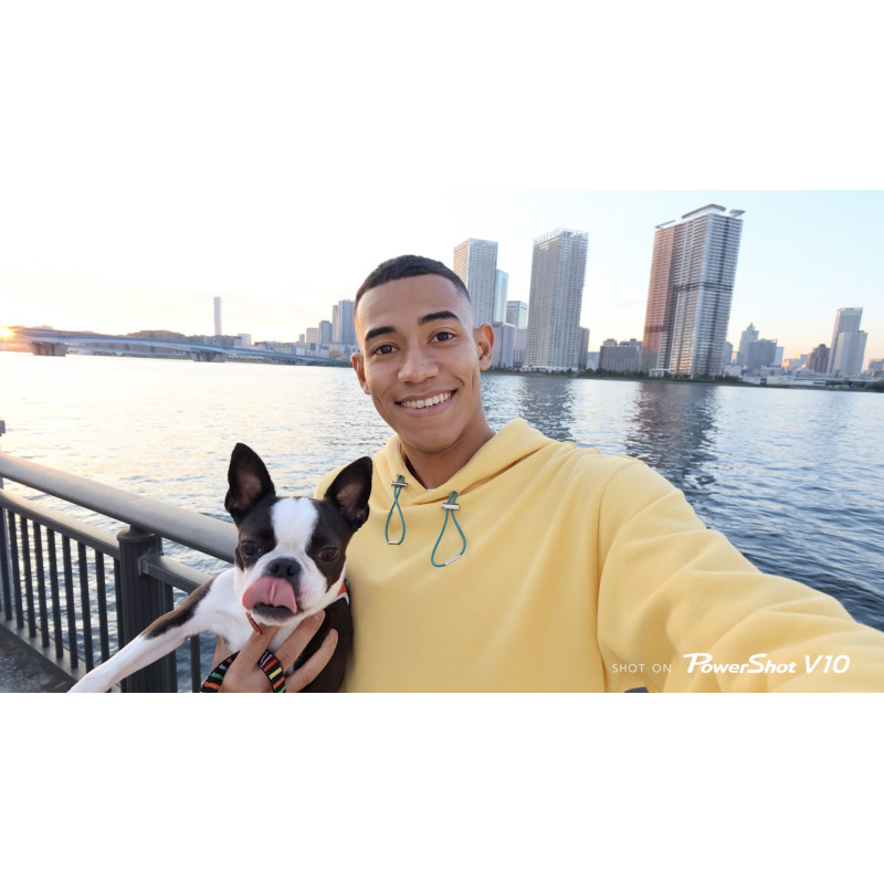 Джобната влог камера Canon V10 предлага запис на висококачествен стерео звук, широкоъгълен обектив с фиксирано фокусно разстояние от 19mm (35mm еквивалент) и вградена стойка с възможност за наклон до 30°.