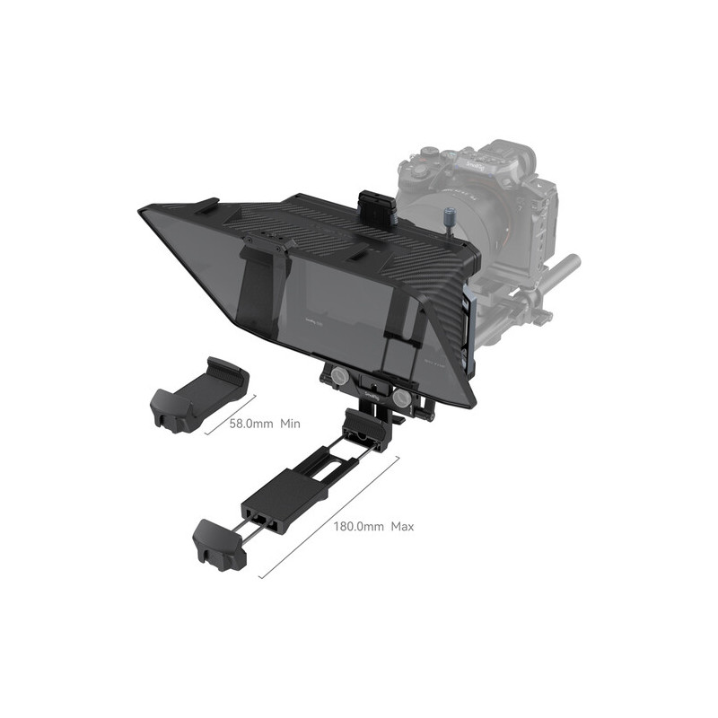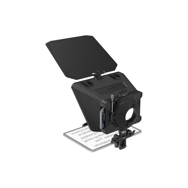 Smallrig 3646 Multifunctional Teleprompter е лесен за сглобяване и е съвместим с обективи с диаметър от 22 до 95мм. Поставката за смарт устройство поддържа таблети с размери до 11 инча и ширина до 279мм. а сенникът се демонтира лесно, когато не е нужен.