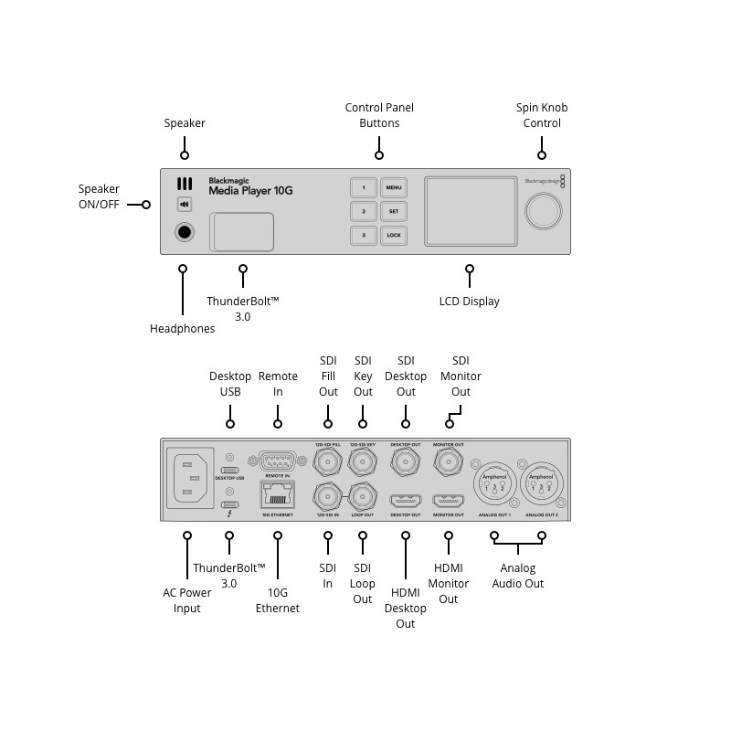 Едновременно кепчър и плеър, Blackmagic Design Media Player 10G осигурява бърза връзка за преглед, редакция и запис на големи файлове.