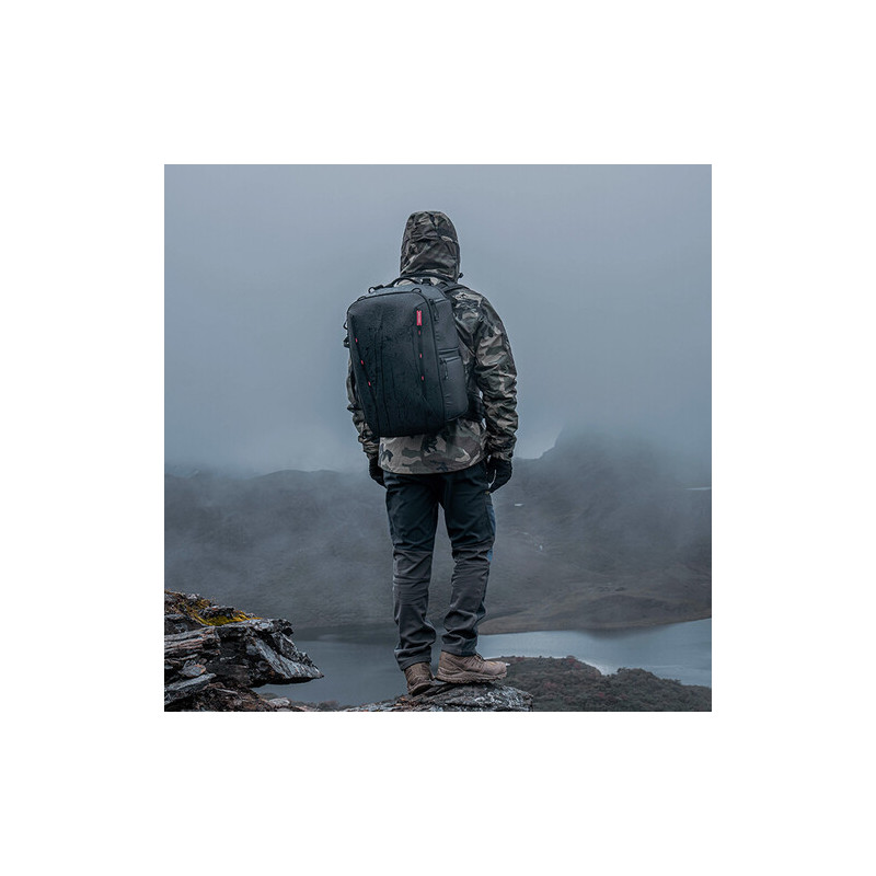 Повърхността на Pgytech OneMo 2 Backpack 25L и дъждобранът са с PU покритие и са устойчиви на пръски за да предпазят вашето оборудване в дъждовните дни. Подплатените регулируеми презрамки и дишащият гръб гарантират оптимално разпределение на теглото и максимален комфорт при продължителни фотографски преходи.