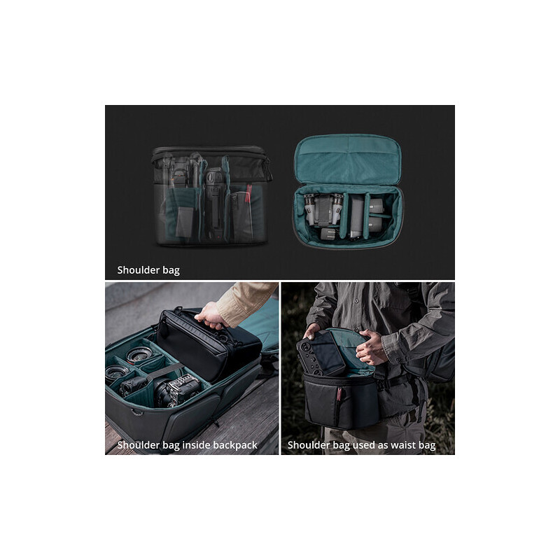 Раницата Pgytech OneMo 2 Backpack 25L е висококачествен модел предназначен за професионални фотографи. Включената чанта за рамо може да използва и като защитено отделение за техника, което удобно побира дрон комплект Mavic 3 Combo.