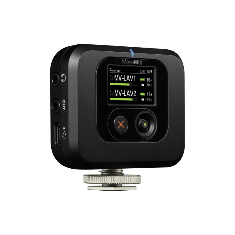Приемникът Shure MoveMic Receiver осигурява съвместимост между безжичните микрофонни системи MoveMic One или MoveMic Two (предлагат се отделно) с DSLR или безогледални камери, компютри и приложения на други производители.