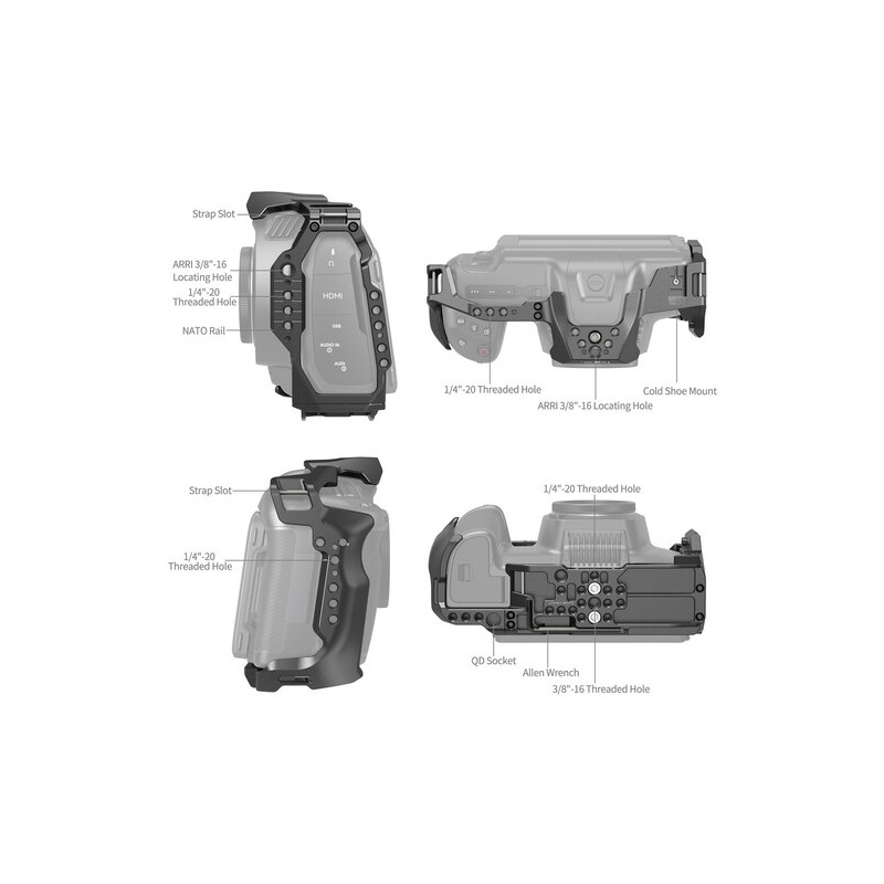 SmallRig 4785 Cage за Blackmagic Cinema Camera 6K е солидна и лесна за използване клетка, проектирана да осигури максимална защита и универсалност при работа с вашата камера. Изработена от висококачествен алуминий, тази клетка предлага множество монтажни точки за аксесоари, като дръжки, монитори и микрофони, без да ограничава достъпа до важни контроли и портове на камерата. С нейния дизайн, тя гарантира стабилност и безопасност на камерата по време на снимане, като същевременно позволява лесно и удобно манипулиране.
