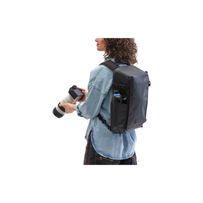 Tenba Solstice V2 може да побере DSLR или безогледален фотоапарат, 4-6 обектива до Tamron/Sigma 150-600 мм или обектив със сходен размер, компактен статив и аксесоари. В страничния джоб можете да съберете от малък до среден статив, подвижните ремъци ви дават възможност да захванете якето си към раницата или да се комбинира с аксесоари от серията Tenba Tools.