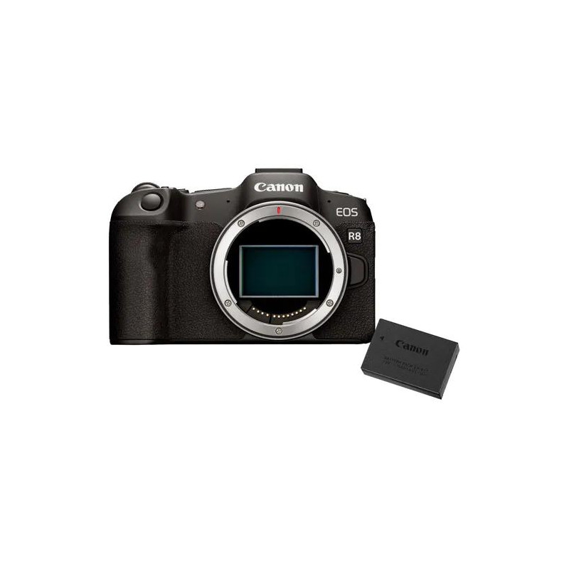 Фотоапаратът Canon EOS R8 е лек и компактен фулфрейм с 24.2MP сензор и процесор DIGIC X. Камерата записва UHD 4K 60p видео с презапасяване от 6K, предлага възможност за 4:2:2 10-bit запис, 4K 30p непрекъснат запис с продължителност до 2 часа, както и FullHD 180p видео.