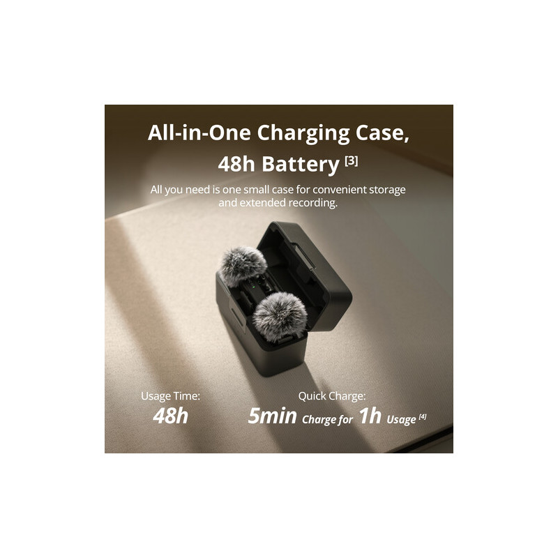DJI Mic Mini дава възможност за постоянно работа до 11,5 часа или до 48 часа време за работа със зареждащия калъф. Ново разработеният приемник на Mic Mini осигурява надежден запис до 400м разстояние и предлага свързаност с 2.4 GHz Wi-Fi и Bluetooth, което позволява директно свързване с видеокамери DJI Pocket 3 Osmo, Action 4, Action 5 Pro или възможност за свързване чрез DJI Mimo App.