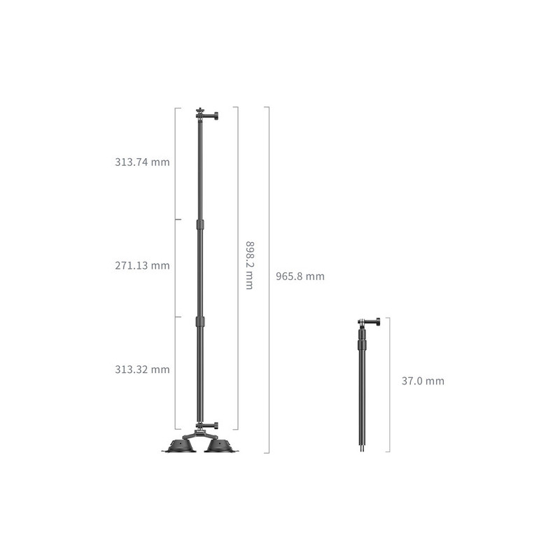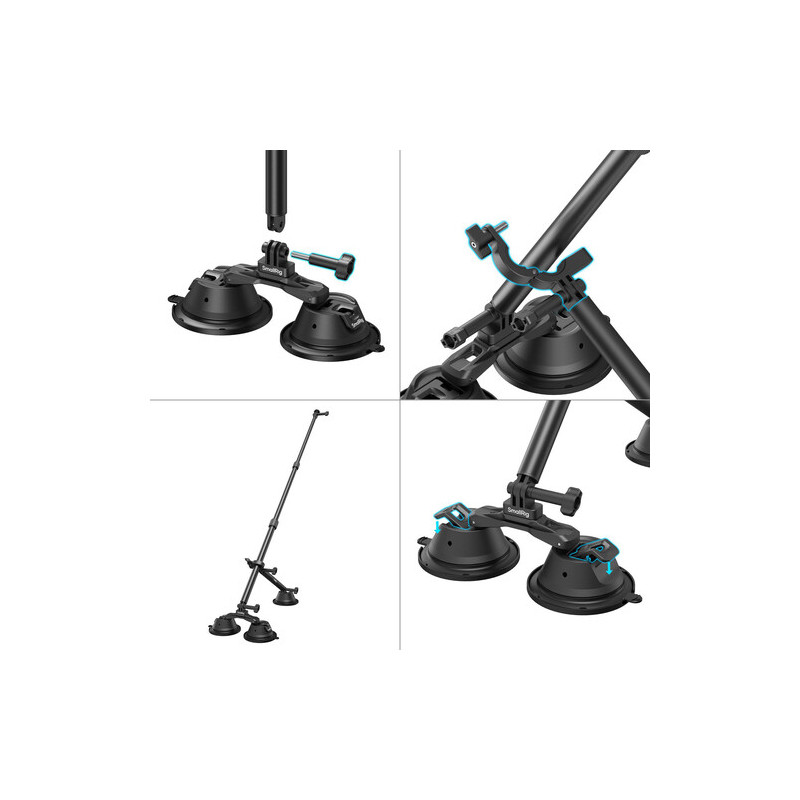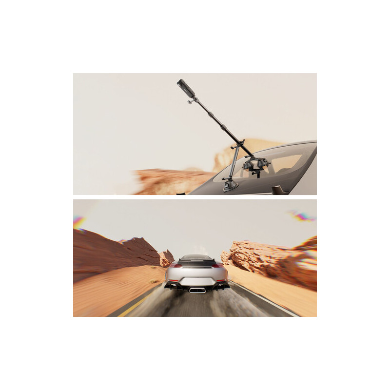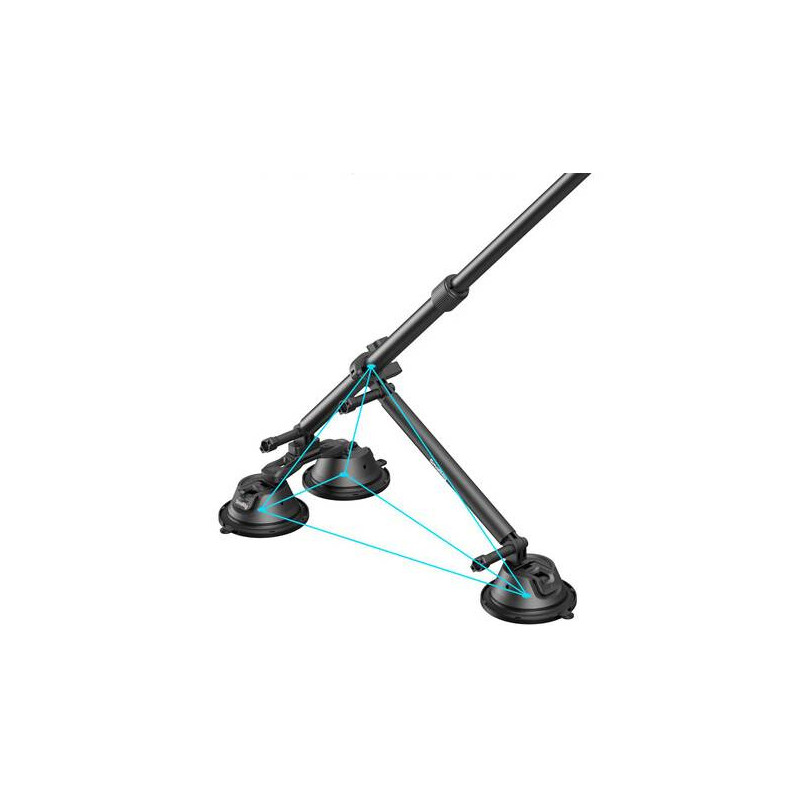 Трите вендузи с бързо освобождаване осигуряват стабилно закрепване на стойката върху капака на колата, предното стъкло или страничната част на автомобила за панорамни кадри в движение.