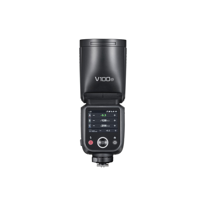 Светкавицата Godox V100 е иновативен модел с мощност от 100Ws спрямо класическите On Camera светкавици с мощост от 76Ws, включващ подвижна външна светкавица, която да допълва моделиращата светлина и е много подходяща особено при портретна фотография.