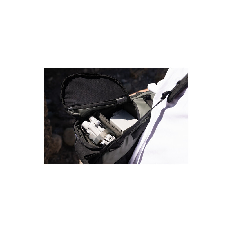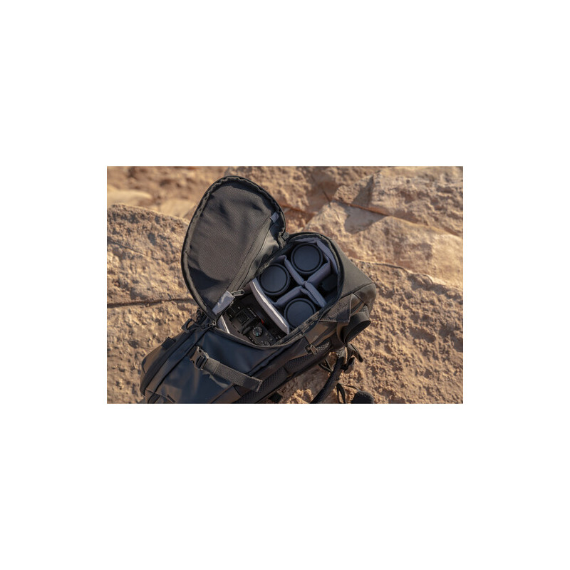 Специално отделение за лаптоп до 16" предлага допълнителна защита за вашето устройство, докато два странични джоба ви дават възможност за носене на бутилка или аксесоари, като чрез интегрираните капаци на страничните джобове може да достъпите отделението за фото техника от двете страни, в което може да пренасяте 1-2 безогледални камери и 3-5 малки обектива.