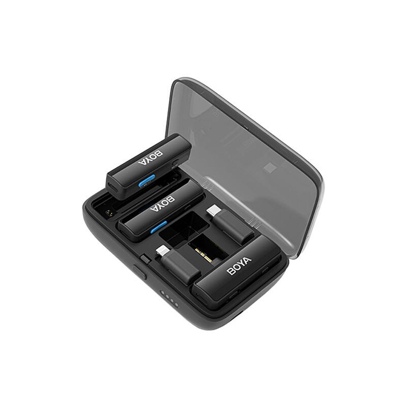 Системата BoyaLink All In One Wireless Microphone за безжични микрофони е перфектното решение за създаване на висококачествени записи на аудио при влогове, интервюта или други мултимедийни проекти с двама участници. Благодарение на своя дизайн, BoyaLink All In One Wireless Microphone осигурява безпроблемно записване и свързаност с множество устройства.