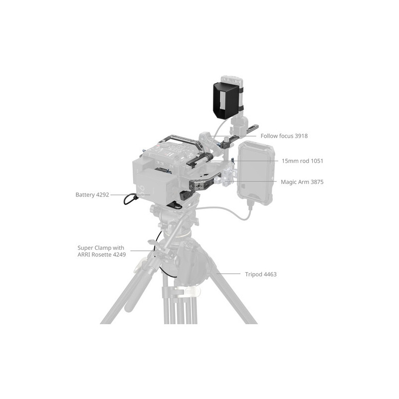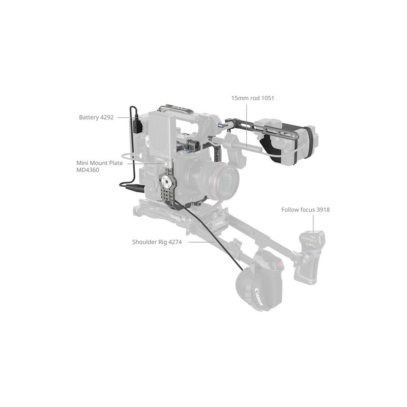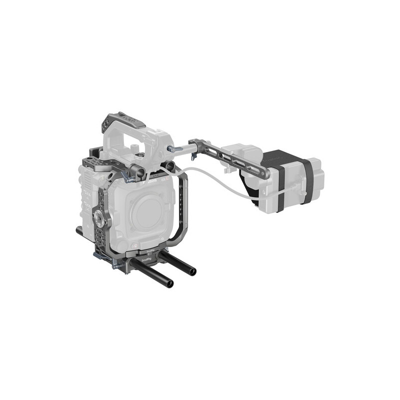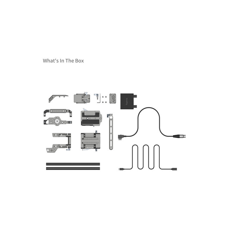 Комплектът включва интегрирана основна плоча (Baseplate) и странични панели, които предпазват камерата и осигуряват лесен достъп до контролите и портовете. Вградената V-Lock плоча за батерия добавя възможност за използване на професионални батерии с дълъг живот, а слънчевият сенник (Sun Hood) гарантира удобство при работа на открито. Допълнителните модули като Top Handle Extension и NATO Rail за LCD монитор позволяват монтаж на допълнителни контролери и аксесоари, като осигуряват ергономичен захват и удобство при ръчно заснемане.