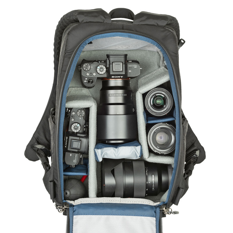 Раницита Think Tank BackStory 13 е идеален избор за фотографи и видеографи, които търсят компактна и удобна раница за пренасяне на оборудването си, без да правят компромис с организацията или защитата на своите предмети. С двата панела за достъп – горен и заден – раницата осигурява лесен и бърз достъп до камерата и останалото ви оборудване, без да се налага да сваляте цялата раница.