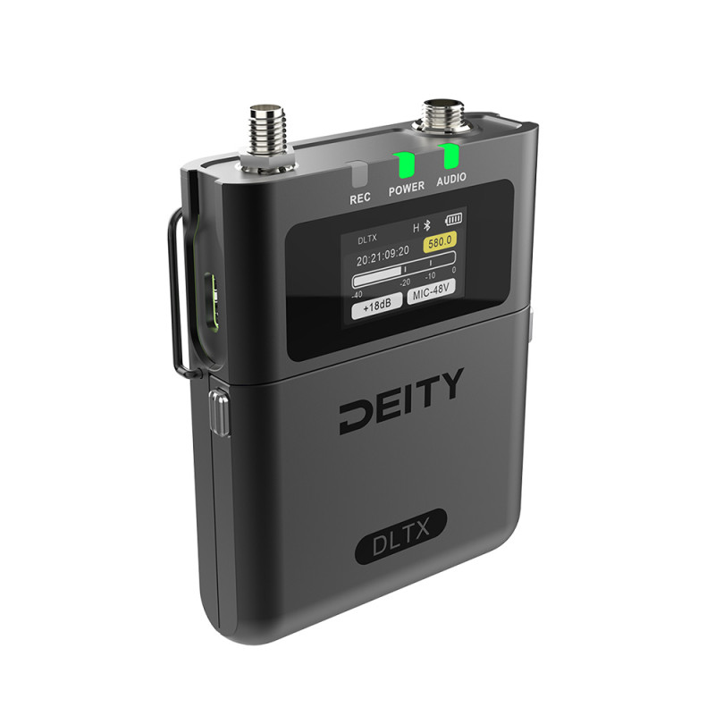 Deity Theos DLTX Phantom Transmitter разполага с 3-Pin Lemo вход за микрофон можещ да осигури до +48V фантомно захранване.