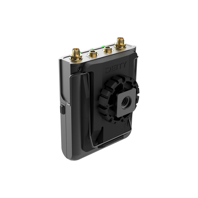 Двуканален приемник за камера Deity Theos D2RX позволява едновременно запис от два предавателя (продават се отделни) . Той е компактен и може да се закрепи на камерата, като осигурява лесен достъп до TRS моно изходи (балансирани) или стерео изходи (небалансирани), което го прави подходящ за професионални филмови и видео записи. USB-C портът предоставя цифрово аудио за свързване с мобилни устройства и телефони.