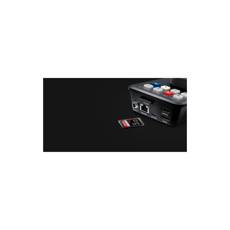 Записът е гъвкав – може да се осъществи директно върху SD или UHS-II карта, както и върху външен USB-C носител. Устройството поддържа работа с Blackmagic MultiDock за едновременно използване на няколко SSD диска, което го прави подходящо дори за продължителни събития. Благодарение на поддръжката на файлови системи exFAT и HFS+, прехвърлянето между Windows и Mac е безпроблемно.