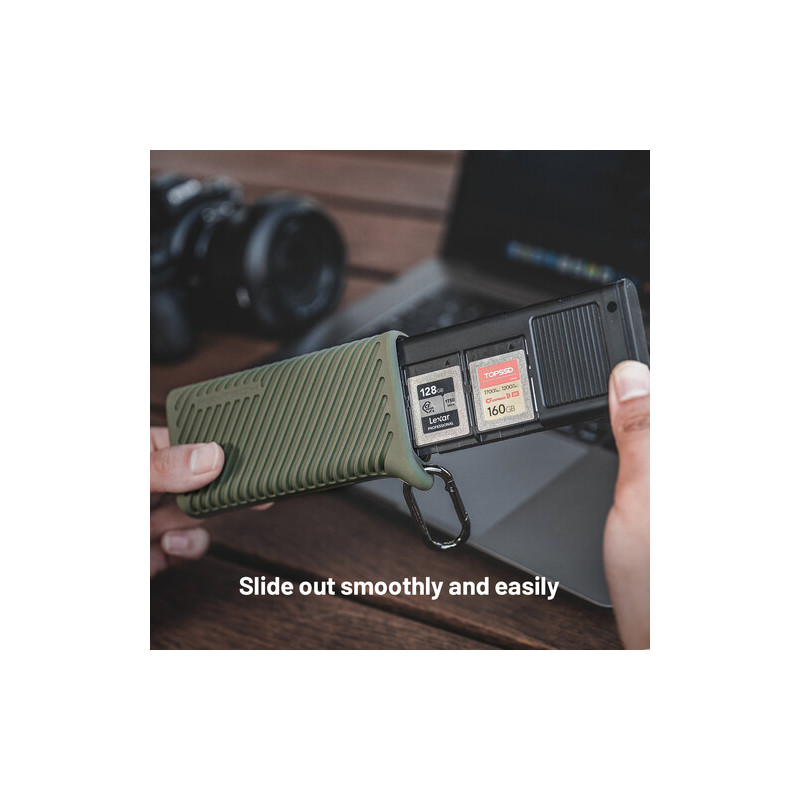 Pgytech Createmate Card Reader Case CFexpress Type A/SD е съвременно решение за съхранение и трансфер на данни, което съчетава в едно компактно устройство – бърз четец на карти и удобен органайзер. Създаден специално за фотографи, видеографи, дрон оператори и пътешественици, този аксесоар не просто съхранява вашите карти, но ви осигурява и мигновен достъп до тяхното съдържание.