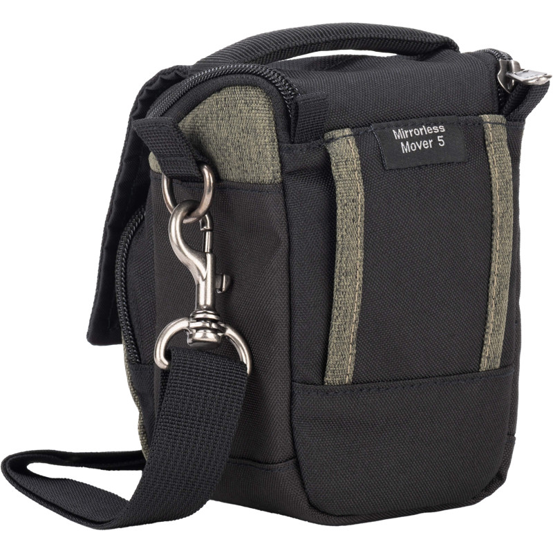 Think Tank Mirrorless Mover 5 V2 е компактна и удобна чанта за рамо, която има възможност да се носи и на колан, благодарение на предвидената за това халка в задната част на чантата.