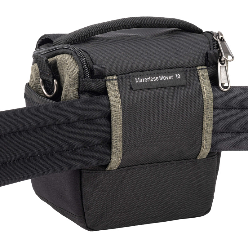 Think Tank Mirrorless Mover 10 V2 е компактна и удобна чанта за рамо, която има възможност да се носи и на колан, благодарение на предвидената за това халка в задната част на чантата.
