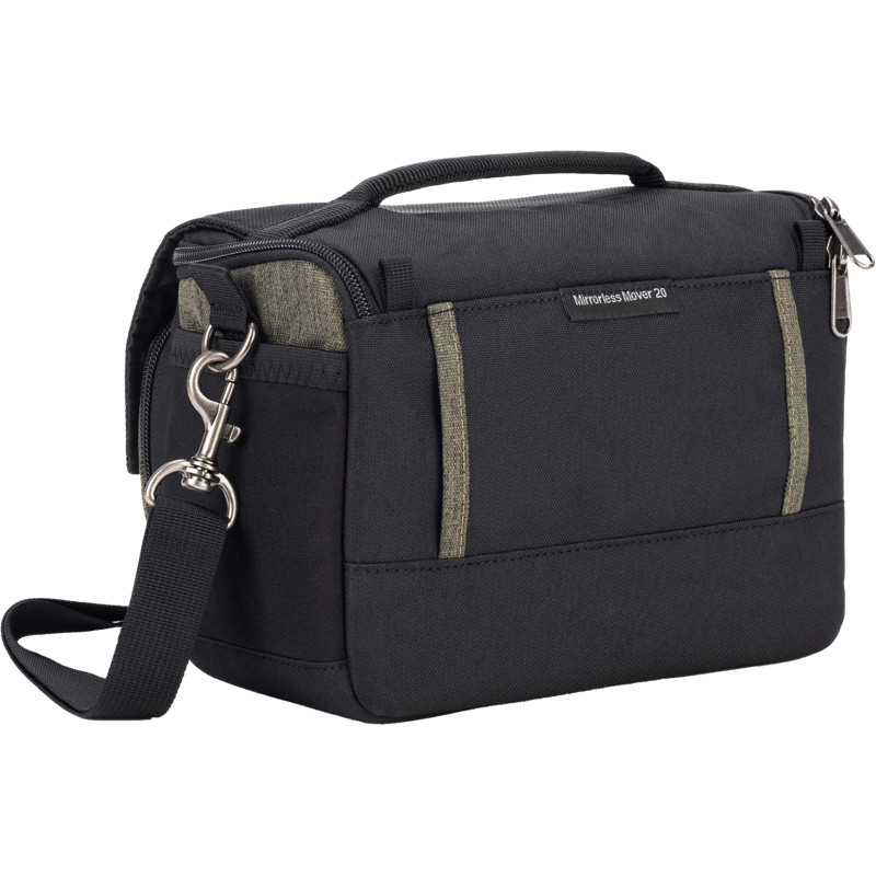 Mirrorless Mover 20 може да побере безогледален фотоапарат с 1-2 обектива до 24-70мм F/4 и аксесоари като главното отделение се затваря с цип и разполага с два подвижни подплатени разделителя като единия има специално място за смартфон. Чантата предлага бърз горен достъп до интериора, в който е разположен мрежест джоб за карти памет, батерии и други аксесоари. В предната част на Mirrorless Mover 20 се намира и джоб с цип за лични вещи и аксесоари като капака на чантата е с магнитно закопчаване и обхваща и двете отделения за по-голяма сигурност.